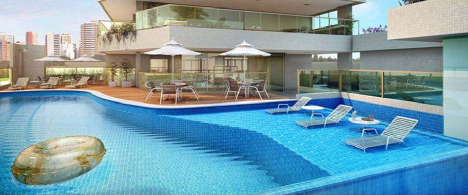 Áreas de lazer: lounge, piscina com deck e espelho d’água, espaço kids, parque infantil, espaço fitness, espaço relax.
